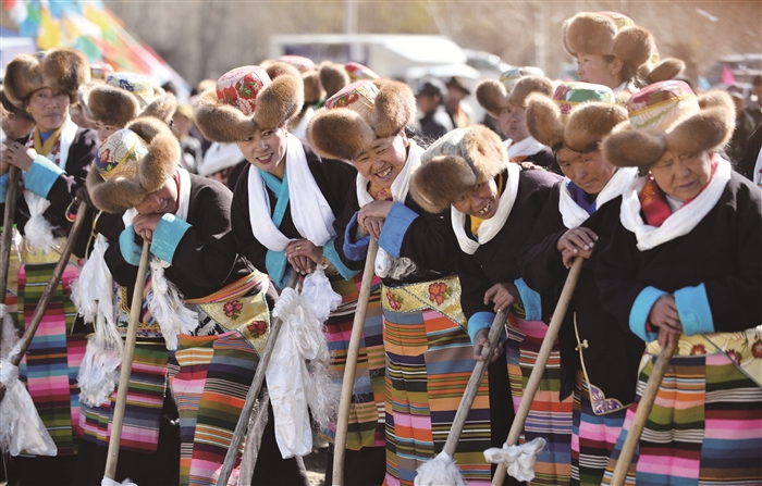 3月17日,山南市乃东区门中岗村妇女参加春耕开犁仪式。