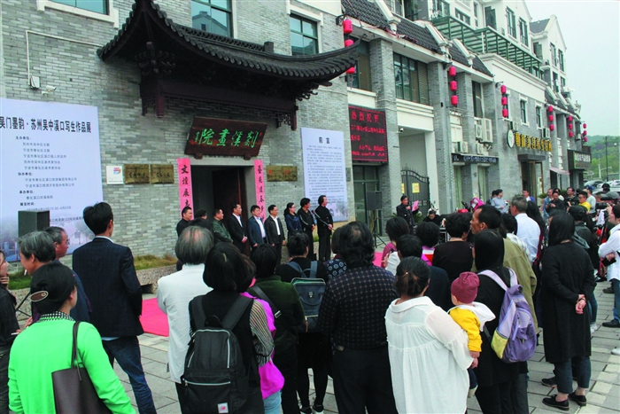 诗因绘画而灵动,绘画因诗而意远。本月13日下午3时58分,溪口镇桃源路剡溪画院门口人头攒动。随着该镇党委副书记陈定峰一声“开展”,由苏州吴中区文联、奉化区文联、溪口镇政府、吴中区美协、奉化区美协主办,溪口旅游集团、溪口旅游股份公司协办的“吴门墨韵·苏州吴中溪口写生作品展”在古镇溪口拉开序幕。据承办方剡溪画院院长皇甫培君介绍,在接下来的11天里,来自吴中的70位书画家和爱好者将采风溪口,为艺术交流溪口留下珍贵的记忆,同时也将墨宝留在古镇,并将免费为溪口的游客和居民提供一场雅俗共赏的书画展示。图为开展现场。 通讯员 建青