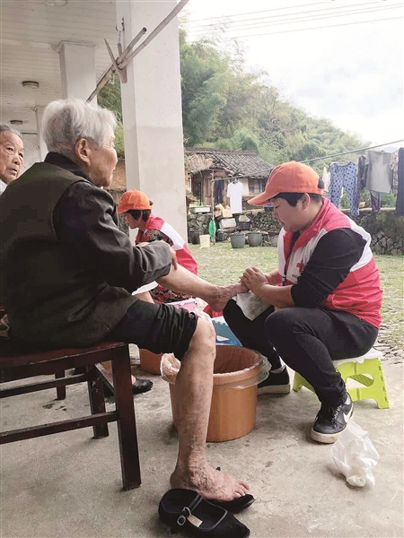 记者 沈珞 通讯员 林玲 4月19日下午,在古树公园,郎玲玲和记者聊了半个多小时,对忙于志愿服务的她,这是极为难得的空闲时间。自2011年11月加入区红十字博爱志愿服务队后,郎玲玲身兼区博爱志愿服务协会副秘书长、区红十字博爱志愿服务队救护师资队宣传干事、“阳光助残”项目负责人等数职,几乎把所有的业余时间都投入了。慰老、护绿、文明劝导……满满占据了她本月的行程,昨天和前天又在传授救护知识、教残障人士排练马灯调。 郎玲玲是博爱志愿服务队“阳光助残”项目的负责人。去年初,志愿服务队在慰问溪口普天乐健康乐园时,了解到园里很多残障人士连最基本的生活自理能力都没有,为此郎玲玲组建起一支教学小分队,定期去乐园教他们洗脸、刷牙、穿衣、手工制作、下棋、做健康操、跳舞等,还带领队员搭建蘑菇及蔬菜示范小基地,教残障人士劳动。志愿者们的辛勤付出多次得到了宁波市残联和区领导的赞扬与鼓励。去年底,“阳光助残”项目还被宁波红十字会推荐到浙江省红十字会参加“红十字人道公益”项目评选。 郎玲玲是大家一致公认的热心队员,脏活累活她总抢着干。服务队刚去敬老院为老人洗脚时,很多人因受不了一些老人的脚臭味而不敢报名,郎玲玲第一个报了名,她说:“我们今天为老人所做的一切,是为社会、为下一代做个好榜样!”作为区体育志愿服务队综合大队副大队长,她还带领队员积极参与各种赛事,为运动员、观众提供人性化、个性化、专业化服务,倡导文明竞赛文明观赛。 身为宣传干事,郎玲玲白天参加志愿服务活动,晚上赶写信息报道等,常常忙到深夜,各类活动信息屡现省市区各级红十字会网站、宁波市文明网、区民政局等网站上,传递奉化的爱心和文明。区红十字博爱志愿服务队2次荣获宁波慈善奖、项目奖,连续7年被评为区红十字会先进集体……荣誉背后都有郎玲玲的心血付出。 成为志愿者前,郎玲玲没有固定工作,收入不稳定,生活及感情也遭遇过挫折。因此,家人刚开始不理解,认为做公益付出太多,得到太少。因为忙于工作,去年8月,郎玲玲父亲生病住院,她白天工作,晚上到医院照顾,五天五夜只睡了半夜。今年寒假,读大学的儿子在家期间,郎玲玲没有时间为儿子烧过一顿饭。对此,她说:“生活的磨练让我更愿意投身公益,用爱心充实文明!” 图为郎玲玲(右)在为敬老院老人洗脚。