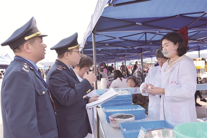 通讯员 王宇宇 3月23日起到4月初“桃园赶集”期间,市民们在萧王庙林家村可体验牛肉干面、千层饼等47家耳熟能详的奉化传统名小吃。而区市场监管局江口所的执法人员也在后台默默地守护着舌尖上的安全。 精选口碑商户。统筹餐饮量化等级及消费投诉情况,选定蒋家龙门千层饼、阿扁牛肉干面、阿国生煎等47家有口皆碑的商铺参展。 把关人员制度。集中约谈47家商铺负责人,与其签订《餐饮食品安全承诺书》,明确采购食品原料需建立索证索票制度、承诺不添加非食用物质、不滥用食品添加剂等。同时,开展具体从业人员专项培训,对其进行健康证备案并统一分发“三白”工作服。 现场严防死守。美食节期间安排定期巡查,确保执法人员到岗到位。现场抽查食品原料,如各家摊位所使用的食用油是否正规,是否定期对煎炸油进行更换等。 另外,此次美食节除了参展的47家商铺,还有当地村民自设的100余个食品小摊,售卖现场烤制的奉化芋艿头等地方美食,执法人员对摊主个人信息和联系方式进行了登记,确保食品安全责任可溯。 工作人员在美食节现场检查