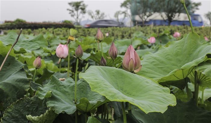 接天莲叶无穷碧,映日荷花别样红。日前,金海路两侧的100多亩荷花绽放初香,市民可在金海路旁的观景平台欣赏荷花美景。据悉,本月底,荷花将迎来盛放期,将是观赏的最佳时期。