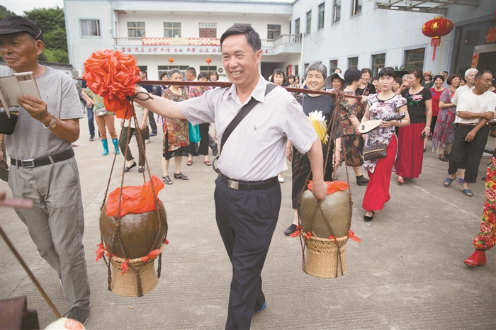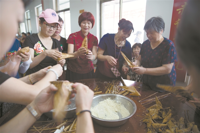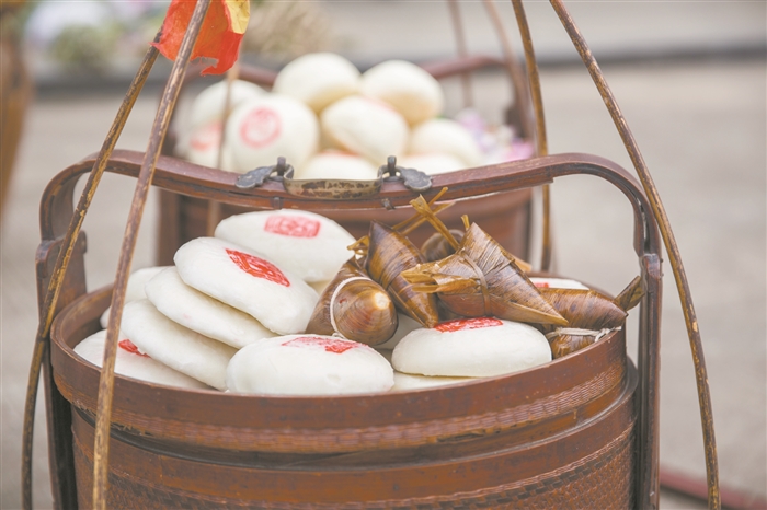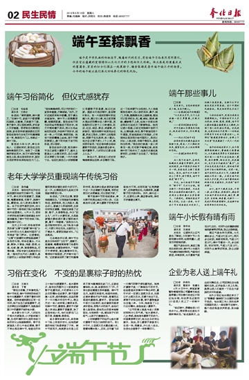 端午是中华民族的传统佳节,随着时代的变迁,有些端午习俗虽然有所简化,但其背后蕴藏的爱国情怀以及化不开的乡愁却历久弥新。街头巷尾弥漫着淡淡的菖蒲香,家里的妇女们围在一起裹粽子、缝香袋都是每年端午绕不开的场景。今年的端午就让我们再次回味奉化的特色风俗。 端午习俗简化 但仪式感犹存 记者 毛淦颉 通讯员 王勋红 俗话说:“清明插柳,端午插艾。”在端午节,家家户户都要撒扫庭院,以菖蒲、艾条插于门眉,悬于堂中,用以驱蚊辟邪,护佑家人平安健康。即使现在无需洒扫庭院,家住岳林街道绿都社区的陈杏成每年仍会将艾叶和菖蒲捆成一束,悬挂在大门上,传承这一端午习俗。 陈杏成今年52岁,奉化本地人。记者到来时,陈杏成正在编制悬挂的艾叶。她取了一支菖蒲折断成两半,将艾叶顺时针缠绕在上面,做出宝剑的形状,固定后用胶带纸将其粘贴在大门上。“宝剑寓意辟邪,可以守护我们一家身体健康、万事顺遂。”此外,艾叶还能用来制作香囊,用于襟头点缀装饰。端午节小孩佩戴香囊,能避邪驱瘟。陈杏成将不同花纹的丝布剪裁成不同形状,将艾叶剪碎置于其间,再以五色丝线弦扣成索,作各种不同形状,结成一串,小巧可爱,清香四溢。她将个别香囊缠上丝线,挂于外甥的脖颈上,剩下的则放于客厅和卧室,用以驱蚊。 陈杏成告诉记者,现在端午节自己家很少裹粽子了,基本上都是女儿女婿买来的,自己也要买去孝敬父母长辈,一代代传承下去。但回忆起自己小时候跟着父母裹粽子的场景,她记忆犹新。提前半天泡好粽叶,直至粽叶软化。取一片结实的粽叶折成漏斗状,握以空心拳,将之前用碱水混合好的糯米包入粽叶里,其他配料可以按个人口味增加,豇豆、红豆、绿豆、黑豆、咸蛋黄、肉块皆可。随后将粽叶将其完全包裹,折成三角形,从粽叶上拉根细线,把粽子包扎起来,放入锅内,将水没过粽子煮4、5个小时,熟后即可食用。“社区每年都会组织裹粽子的活动,我基本都会参与,每次裹粽子,儿时的记忆都会涌上心头。” 除此之外,陈杏成儿时还有喝雄黄酒治百病、杀百毒的习俗,这一习俗来源于《白蛇传》,大人将雄黄泡在酒中,在小孩的耳朵、鼻子、脑门、手腕、脚腕等处抹上雄黄酒,据说可以驱使蚊虫、蛇、蝎、蜈蚣、壁虎、蜘蛛、蟾蜍等不上身,但她十年前去药店购买已经成为了禁售物品。她向记者介绍道,以前还有挑端午担的习俗,女婿将鹅、油包、粽子等装在两个竹篮里,用扁担挑到丈母娘家,丈母娘将这些东西分给村里的人,然后以衬衫、小孩衣服、年糕干等回礼,场面相当热闹。“现在我们就是一家人团聚在一起,吃吃粽子喝喝红酒,虽然端午的习俗淡化了,但是仪式感还是要有的,这样就不会忘祖了。”陈杏成表示。 老年大学学员重现端午传统习俗 记者 袁伟鑫 本报讯 每年农历五月初五是我国的传统节日端午节。在端午节,奉化民间有插蕲艾、挂菖蒲、喝撒雄黄酒、吃粽子、挑端午担、藏香袋、幼儿穿虎头鞋等习俗。由于生活节奏的加快,如今端午节的一些传统习俗已经渐渐消失或者简化。6月14日,老年大学民俗班在萧王庙街道永丰村演绎重现了端午节的传统习俗,重拾端午记忆。 当天上午9时,民俗班的学员扮演“女婿”们挑着“端午担”从永丰村的文化礼堂到村里的“丈母娘家”登门拜访。记者看到,“女婿”们挑着的米箩担里盛满了各色的礼物,有油包馒头、大白鹅、蹄胖、大黄鱼、鸡蛋、香烟、白酒、毛蚶、糖、笋、黄酒等物品,可谓丰富。民俗专家江圣彪告诉记者,一般农历五月初二是喜日,是已嫁的女人到娘家孝敬父母或未婚的男郎求婚定亲的大好日子。这一天,女婿挑担送礼品到丈母娘家孝敬岳父母。 俗话说,“丈母见女婿,黄草鸡娘捕勿及。”丈母娘家则放鞭炮相迎、递烟倒茶,送上洗脸水、搬出点心,温暖之心热诚相待,左亲右邻相互道喜。娘家还准备了衣服、鞋子、水果等物品,作为“回头礼”,对于小夫妻而言,尤其是新婚夫妻或者打算订婚的准夫妻,属于一种谢意。“虽然如今礼品可能有所变化,但习俗至今盛行,只要父母还在世,出嫁的女儿不管多大,都要回娘家送礼。”江圣彪说。 江圣彪告诉记者,端午节也是自古相传的“卫生节”,插蕲艾、挂菖蒲、喝撒雄黄酒等习俗都和激浊除腐、杀菌防病有关。“‘荒坡艾叶喷喷香,溪边菖蒲伴石长。青烟剑叶能驱疫,岁岁端午站门岗。’这段童谣说明了蕲艾和菖蒲的作用,现在奉化很多居民家在端午这一天会插蕲艾和菖蒲,有的还把它们点燃熏室,可以防蚊灭蚊。” 粽子是端午节的传统美食,奉化粽子和周边地区大同小异。江圣彪告诉记者,奉化裹粽子的壳和有些地方不同,采用的是“红壳笋箬壳”,这种箬壳没毛,光滑柔软,是裹粽子的天然材料。另外,端午这一天,还要吃山笋、豌豆等食物,保佑平安健康过夏天。 习俗在变化 不变的是裹粽子时的热忱 记者 王楷文 通讯员 丁雷 “粽包分两髻,艾束著危冠。”端午节将至,端午节特有的传统习俗中尤属裹粽子、吃粽子最受市民喜爱。岳林街道桃源社区有一位市民,她不但自己家里裹粽子,还主动帮社区邻里裹粽子,她就是邻里口中的裹粽子能手俞水源。 俞水源今年73岁,儿时成长于绍兴市新昌县,25岁嫁到溪口镇,生活环境的变化连同传统习俗的变化让她感触颇深。粽子在新昌县人的心中地位颇高,粽子不单出现在端午节,每逢