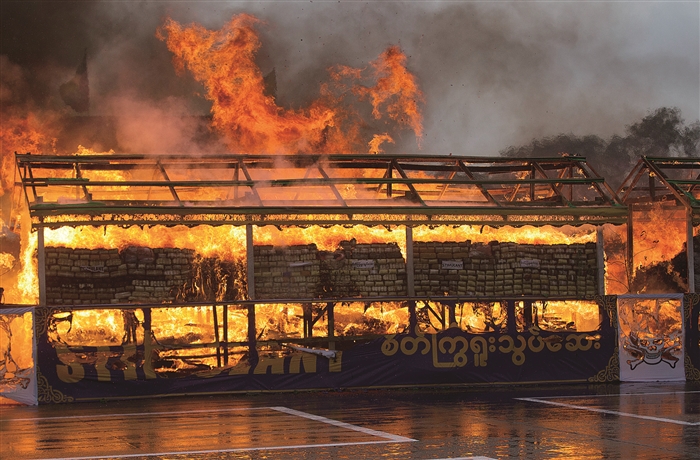 当天是国际禁毒日,缅甸执法人员销毁了市场价值1.87亿美元(约合人民币12.3亿元)的缴获毒品。新华社发