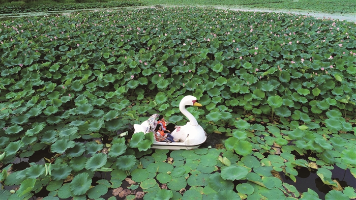 盛夏时节,河北省滦南县北河公园里荷花竞相绽放,进入最佳观赏期,吸引了众多游客和市民前来观赏。新华社发