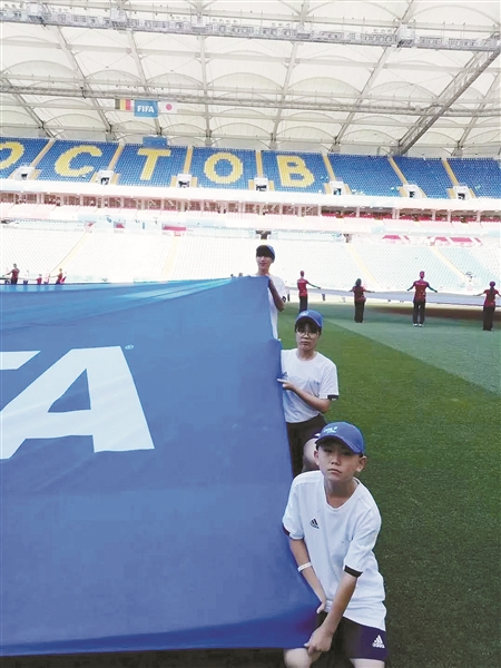 记者 景小芳 7月2日凌晨2时,俄罗斯世界杯顿河畔罗斯托夫竞技场内,日本同比利时1/8决赛前入场仪式上,来自宁波的3名小护旗手伴护着国际足联会旗走进球场,其中一个个子不高却阳光帅气的少年叫江简辉,是土生土长的奉化“小顽”。 江简辉,溪口镇新建村人,今年15岁,毕业于武岭小学,目前就读姜山实验中学初二。关于他的足球故事,要从他小学四年级说起。那时,每周的三四节体育课,是他最欢乐的时光。江简辉喜欢表达,性格活泼,因为觉得好玩,开始接触足球,慢慢表现出运动方面的天赋。因踢得好,被老师招进了校队,曾代表校队获得宁波市第十七届运动会(青少年部)男子足球乙组第二名的好成绩。就读初中后,进了宁波市队乙组队,目前担任队里的前锋。 今年2月底,一个消息传来:万达集团作为本届世界杯足球赛主要赞助商之一,要在全国招募选拔482名护旗手,将FIFA(国际足联)会旗和双方球员、裁判引领到球场。旗手招募的条件是12岁到17岁、热爱足球的少年,分为初赛、复赛和决赛3个环节。初赛要求拍照上传网络平台,根据点赞人气选出复赛名额;复赛则是以颠球、绕杆等项目选出决赛名额;而决赛则通过“我的世界杯足球梦”演讲、足球知识竞赛、趣味互动等环节进行综合评选。 最终,江简辉以综合成绩第一名,与宁波市的另外两个孩子潘润泽、钱坤(女)一同入选。他们和呼伦贝尔的3名护旗手组成一组,于7月1日凌晨2时50分从北京首都机场飞往莫斯科,开始了3天的世界杯之旅。 “从没想过,有一天能出现在世界杯的赛场上。”江简辉说,他是巴西队的忠实粉丝,尤其崇拜内马尔,尽管这次没有偶遇到巴西队,“但是,能到世界杯比赛现场已经是天大的喜事。”问及在俄罗斯的行程,江简辉兴奋地表示,虽然来去只是短暂的3天,但在球员通道里见到了顶着爆炸头的费莱尼,还有德布劳内、阿扎尔等一众球星时,几个小伙伴都兴奋地发朋友圈“显摆”。 值得一提的是,虽然现在已经到了快乐暑假,江简辉还留在学校备战下半年的省运会,每天上下午都会出现在训练场地。江简辉的妈妈告诉记者:“虽然足球训练占据了一些时间,但是一点都没有影响到孩子的学习。”看到江简辉如此刻苦懂事,他的父母放心很多。谈起未来是否会走上职业道路,江简辉露出了腼腆的笑容:“想是有想过,但是不知道能不能实现。” 江简辉(前)在本届世界杯赛场和小伙伴留影。