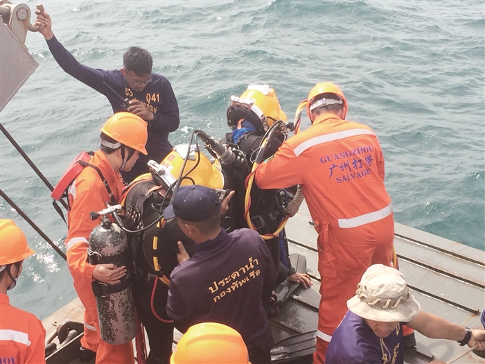 中泰救援力量在事故海域尝试打捞最后一具遇难者遗体
