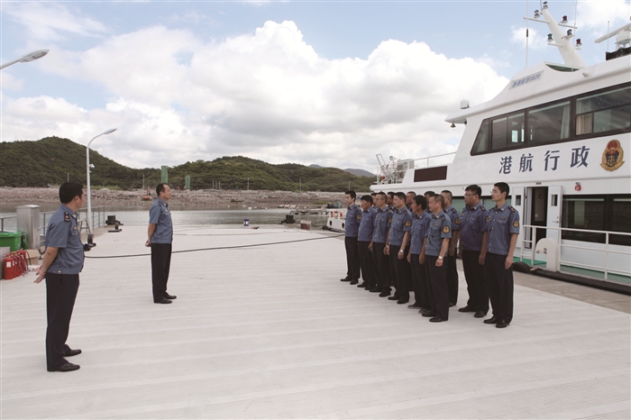 浙港航巡0828执法艇停靠在新建的沿海港航管理码头 港航执法队伍蓄势待发 通讯员 鲍真婷 经过6个月的紧张施工,奉化沿海港航管理码头项目顺利完工,于7月正式投入使用。这是奉化建成的第一座沿海管理码头,填补了奉化区港航管理码头的历史空白。 该码头位于象山港避风锚地建设项目东堤外海侧,距北海湾大道约200米。码头平台由1艘泵船构成,平面尺寸45米×12米,泵船两端分别设置钢制撑杆与撑墩相连,并通过活动钢引桥连接栈桥和东堤。 随着海洋经济迅速发展,我区依托滨海生态和景观优势,发展滨海休闲度假旅游和临港物流等,象山港港区吞吐量和到港船舶数量大大增加,而奉化区域内没有配备港航管理码头。针对这一问题,去年,区港航管理处将沿海港航管理码头项目列为重点工程,并于12月动工建设。 该码头的建成启用,将使沿海港航管理工作拥有更高的反应速率和更好的管理效率,保障奉化港域水运的安全畅通,从而为我区沿海经济发展服务及管理提供更好保障。