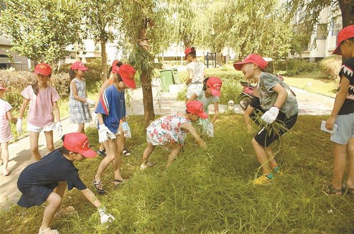 近日,岳林街道上林社区假日学校师生、家长和社区工作人员开展捡拾垃圾、清除杂草活动,美化了社区环境。