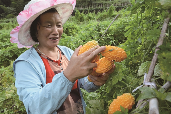 □通讯员 赵伊丽 毛节常 本报讯 吃过金铃子吗?对很多年轻的奉化人来说,这个名字也许有点陌生。但老一辈的奉化人都知道,金铃子是过去田间常见的水果,甚至墙前屋后也时有种植,是小时候特别受欢迎的水果,如今却不常见了。大堰镇农户胡碎良别出心裁,种下15亩金铃子,将土水果变成“金果子”。眼下,金铃子进入采摘期,每亩产量约两三千斤,每斤零售价可以在15-25元左右。 在大堰镇岭下村山坡的梯田上,胡碎良用竹竿搭出了一个个三角架子,金铃子藤蔓缠绕生长,看起来一片繁茂。在绿色的枝叶间,一个个金黄色的果实引人注目;但走近了看,会发现有更多的青绿色果实悬挂在枝蔓上,可谓硕果累累。 据了解,金铃子是葫芦科苦瓜属的植物,它不仅可以作为水果食用,还有很高的药用价值,能疏肝、行气、止痛、驱虫等。金铃子二十多年前在奉化并不少见,如今却十分稀少了。胡碎良在宁波市农科院专家的建议下,今年4月份引进了一批金铃子种子进行试种。但试验并不顺利,只有小部分种子发芽。他随后又购买了一批种子,在5月20日种下,这次有超过85%种子成活,并于7月中旬开始少量采果。 图为工人正采摘金铃子。