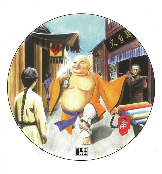 记者 张夏珍 天一阁、老外滩、钱业会馆、天封塔、北仑港……90后奉化小伙应杭川创作了一组宁波风景彩铅画。去年,这套作品被宁波市旅游局选中,制成了明信片开始发行。 从未受过专业训练的应杭川凭着自己对绘画的热情,投身创业大潮,创办工作室和文化传播公司。他说,想用手中的画笔做有意思的事,希望让更多人了解宁波深厚的文化底蕴。 从小爱好画画 出生于1990年的应杭川是土生土长的奉化人,老家在溪口镇明溪村。从小跟着爷爷奶奶长大的他,学习成绩不好也不坏,但是爱好画画却是一直没有改变的追求,从灌篮高手、数码宝贝到火影忍者,只要是动漫里出现的人物,他都会认真画下来。虽然从未接受过专业训练,但大家都夸他画得好。 渐渐应杭川的画出了名,学校的黑板报成了他的画卷,很多同学找他帮忙,甚至有个同学让他在旗袍上画了3朵牡丹,最后还得了奖。职高毕业了,应杭川进入一家民营企业网络部实习,过着朝九晚五的日子。“说是网络部,其实就是个打杂的,没有太多事情,混着日子,领着工资,一眼就能望到头。”应杭川说。不如去当个美术老师吧?这样既能作画,又能很好地和他人交流自己的艺术想法,岂不是一举两得。他应聘到宁波一家培训机构做了老师。但一段时间后,他发现,培训班的教学模式单一、固化,学生无法自由地选择喜欢的课程,而是根据年龄区分出不同的绘画方式。他不想这样死板地教下去,觉得应该充分挖掘学生的特长,因材施教。 为梦想而创作 恰好这时,应杭川接触到了彩铅画,并为之吸引。想按照自己的方法来教学生,那就自己开工作室,运用彩铅教学,将绘画的乐趣、无拘束、自由,真实地展现出来。虽然父母和周围的人都觉得不靠谱,但年轻何惧失败?2013年底,只有几张桌子和几把椅子的“应先生”工作室成立。 没有资金宣传,彩铅受众面小,大家对这个从未听闻的工作室深表怀疑。幸好,网络帮助了他不少忙,前期的作品展示,使他拥有了众多粉丝,渐渐地工作室开始有了人气,越来越多的人认可他教学,支持他画作,有人甚至从杭州驱车几百里只为在工作室画上2小时。 应杭川的微博粉丝不少,有些粉丝来宁波游玩会问他哪里好玩。问的人多了,应杭川发现除了风景,当地的历史和文化是大家最想了解的。于是,他产生了用彩铅画呈现宁波的想法。 一支笔画一座城 他用一支笔画出了一座城,惊艳了一群人……这套作品也被宁波市旅游局选中,制成了明信片。应杭川由此声名鹊起。 在创作过程中,他发现自己对宁波知之甚少,而创作的过程恰是了解宁波亲近宁波的过程。他醉心于宁波丰厚的人文积淀、悠久的历史底蕴,围绕宁波这座城市的创作一发不可收拾。布袋和尚传说、徐福东渡传说、康王落难故事、梁祝传说……紧接着,应杭川又画了一组宁波十大传说。当国家提出“一带一路”战略后,他又发现,宁波是海上丝绸之路的重要节点。于是,他又开始画宁波与海上丝绸之路的系列画作。 “宁波是我创作灵感的来源,我爱画画,也喜欢生活的城市。对于我来说,现在做的事就是有意义的事。以后,我打算办一些关于宁波的展览,也希望更多的人喜欢彩铅画,拿起画笔,让自己变得更快乐。”应杭川说。 应杭川创作的《布袋和尚传说》 应杭川做公益宣传宁波 宁波城市明信片
