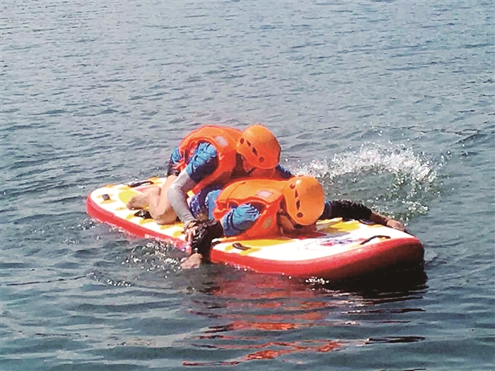 记者 沈珞 通讯员 郎玲玲 本报讯 8月10日上午,往日平静的剡溪康岭桥附近水域传来不少动静,10位区红十字会户外救援队队员正顶着烈日在此集训。 上午9时30分左右,队员们来到岸边准备,有的给桨板和橡皮艇充气,有的为队员分发救生衣、防晒袖笼等……不消几分钟,人员和桨板、橡皮艇都下了水。 队员们先是在水里做了一会儿热身,接着就分两个小队进行橡皮艇和桨板救援练习。队长崔奉家告诉记者,桨板救援技术起源于美国夏威夷的桨板冲浪运动,桨板重量轻、携带方便,近年来被逐渐应用于水域救援和城市内涝救援中。今年7月,区红十字会户外救援队派员参加了浙江省水域救援联盟组织的桨板救援培训班,将桨板救援技术带了回来。近两个月来,队员们数次抽时间集训,由参加培训的副队长许亚力把桨板救援技术教授给其他队员,并熟练巩固。 入水不久,许亚力和另一位队员即演示了一次桨板救人,之后另两位队员演示了翻板救人。“在落水者有意识的情况下,用第一种方法基本能达到救援目的,翻板救人则适合救援失去意识的落水人员,通过救援人员和落水者牵手、翻转桨板这几个动作,在短时间内把落水者置于桨板上。”崔奉家告诉记者。紧接着,他又在岸边指点一位队员操作,“抓住绳子,翻艇!”记者得悉,翻艇救人,是在橡皮艇意外翻转后,在短时间内把它重新翻过来的一项救援技术,适用于救助被艇覆盖的落水者。 当天集训一直延续到下午1时左右。 图为集训现场