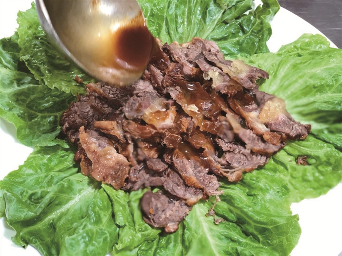 牛肉有多种做法,牛肉汤、水煮牛肉、红烧牛肉、烤牛肉……江口街道蒋葭浦村的蒋仁云别出心裁,在烤牛肉时,加入了水果、蔬菜,制作出了一道功夫菜——果味牛肉,不少人吃了后说既解了油腻,又解了馋。