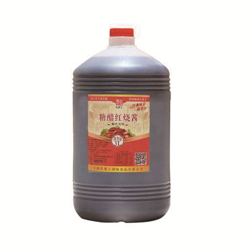 3.倒入200ml海鲜红烧酱,料酒100ml,糖醋红烧酱50ml烧沸。