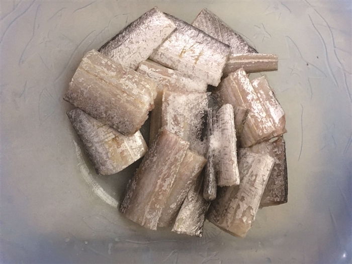 1.新鲜带鱼洗净切段(1250克左右)。
