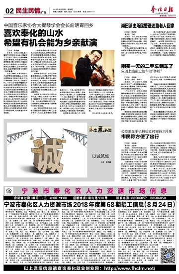 喜欢奉化的山水 希望有机会能为乡亲献演