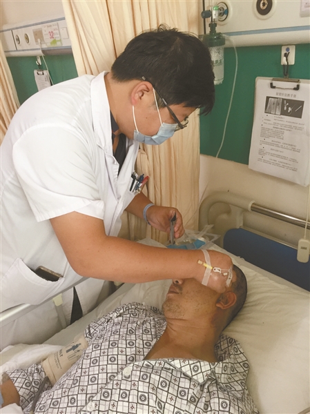 记者 袁伟鑫 通讯员 方赛 本报讯 前天,有读者给记者发来一张照片。照片中身穿白大褂、右手插着留置针的医生正在给患者换药。这位医生是区人民医院神经外科主任医师江建军,他身患肺炎正在住院治疗,可神经内科医护人员人手紧张,刚刚输完液的他又主动回到岗位。 神经外科医护人员告诉记者,8月22日当天,江建军收了7位新病人,做了2台手术,下班后赶去杭州开会。2天后回到奉化就持续发烧,高烧39°还坚持上班,抽空便自己挂瓶输液。前天,因为高烧39.6°,他去做了CT,发现肺部炎症比较厉害,不得不住院治疗,没想到刚输完液他又出现在病房。