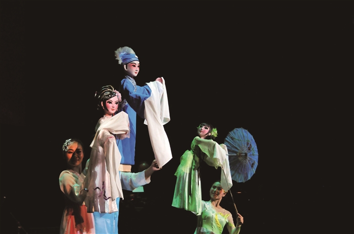 9月12日,在波兰首都华沙,来自中国湖南省的演员为当地观众表演木偶戏《游湖》。