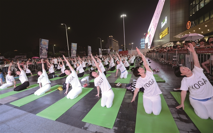 小雨挡不住瑜伽爱好者的热情。9月22日晚上,在区体育总会指导下,万达广场与梵合瑜伽俱乐部联合在万达南外广场举行“全民健身 乐享健康”瑜伽大会。280余名瑜伽爱好者展示了老年瑜伽、亲子瑜伽、手拍鼓等精彩节目。记者 张夏珍 通讯员 周力