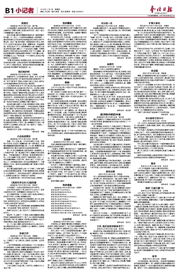新城实验小学403班小记者 王煜婷 亲爱的玟子,今天我想和你说一些话。玟子,还记得我给你取的名字吗?“玟”是你的名字里本来就有的一个字,“玟子”跟“蚊子”同音,叫起来又顺口又亲切,每次这么叫你我都觉得我们的关系比别人都好呢! 今天我想对你说:玟子,对不起,因为我以前脾气不好,时常跟你吵架,还总是对你大吼大叫。还记得上学期期末的时候吗?我们俩吵得很厉害,一直到期末考试完都不讲话。可是到了暑假的时候,我还是忍不住了,就求着妈妈带我去找你和解,因为我不想让我们分开的两个月还在生气。当我来到你家之后,我却说不出话来,到最后我们也没说一句话,我在心里还埋怨你为什么不和以前一样主动与我和好,还想着以后都不理你了。 我去参加夏令营的12天里,老师跟我们讲做人要宽容,对自己好的人要学会感恩……听到这些话时,我就想起了你,想起了你平时对我的好,我决定回家以后一定找你道歉去。夏令营结束后,我回到家第一件事就是请求妈妈再带我去找你,可是还没等我去找你,你就先主动给我写了一封信,信里还说:“我们和好吧。” 这件事情让我很感动。虽然我平时当你的面讲不出来,但是心里还是很惭愧。谢谢你一直把我当朋友,以后我也要好好对侍你,不因为一些小事情就生气,我们一起好好学习、互相帮助,还和以前一样一起学习、一起玩、一起说说我们的心里话。 直到我们长大,还做一对好朋友,好吗? 指导老师 徐瀚