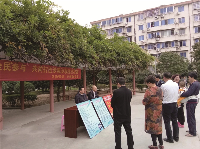 近日,区物业管理处携手宁波天歌物业有限公司在城南三区小广场举办“扫黑除恶”宣传进小区活动。
