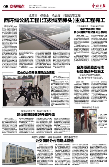 西环线公路工程(江拔线至滕头)主体工程完工