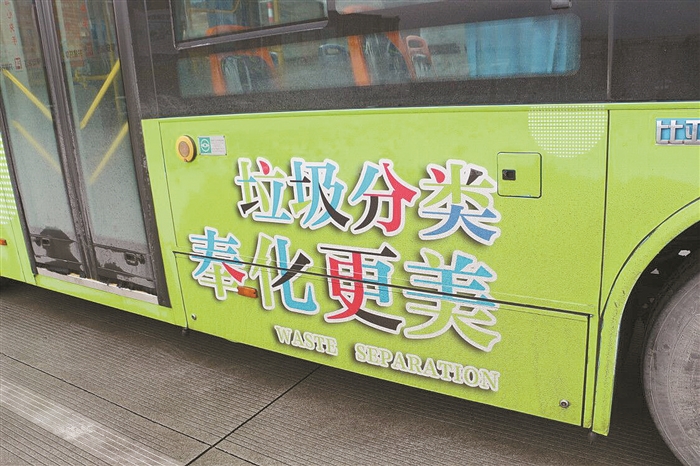 公交车及候车亭 穿上垃圾分类宣传“新衣”