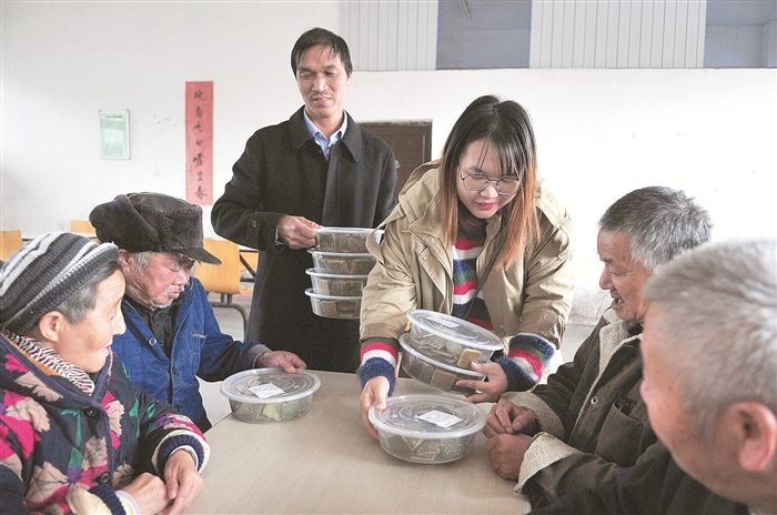 昨天,昇仟食品厂厂长王乾松将自家做的传统小吃——苔菜饼送到了西坞街道敬老院,让老人尝尝“奉化味道”,还向老人们承诺,只要老人喜欢吃,今后一个电话随时送到。