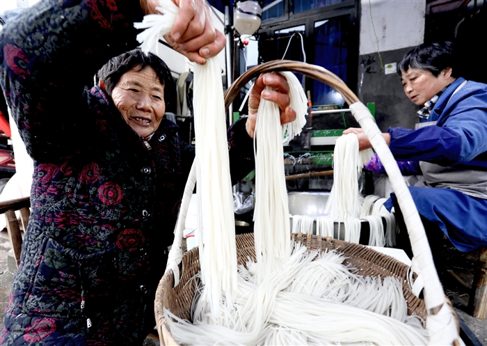 图为后畈村村民在做番薯粉丝。通讯员 毛节常 赵伊丽