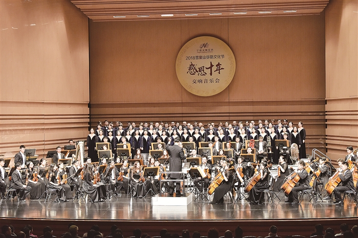记者 景小芳 陈海波 本报讯 昨天晚上,宁波大剧院内座无虚席,2018雪窦山弥勒文化节“感恩十年”交响音乐会在此倾情上演。全国政协文化文史和学习委员会副主任叶小文担任此次音乐会的特邀嘉宾主持。观众在立体的感官体验中,淋漓尽致地感受到弥勒文化和音乐艺术的魅力。 此次交响音乐会亮点十足,不仅有宁波交响乐团的精彩表演,还邀请了指挥家程浩、琵琶演奏家吴玉霞、歌唱家吕薇等嘉宾。 “有朋远方来,我们用笑脸来接待,温暖会让心花盛开……”伴随悠扬的交响乐,稚嫩又动听的童声轻声哼唱导入,由宁波呐豆少儿合唱团、宁波群星合唱团共同带来的合唱《弥勒意境 笑迎天下》引领观众仿佛走入了热情好客的弥勒之乡。随后,琵琶协奏曲《云想·花想》,展现了如诉如泣、娓娓道来的深切情丝。当熟悉的小提琴协奏曲《梁山伯与祝英台》音乐响起,观众如痴如醉。叶小文大提琴演奏《如歌的行板》《鸿雁》以及吕薇带来的《茉莉花》等歌曲,更是将音乐会一次次推向高潮,引来全场掌声不断。 音乐会尾声,伴随着《人间弥勒》交响曲旋律缓缓响起,观众感受着音乐的空灵之美。当所有的乐器在最后一拍戛然而止的一刻,全场随即爆发出雷鸣般的掌声,久久不能平息,一场畅快淋漓的交响音乐会至此落下帷幕。