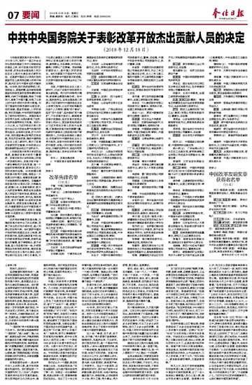 中共中央国务院关于表彰改革开放杰出贡献人员的决定