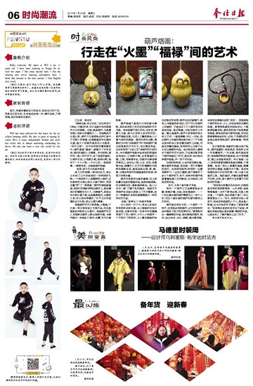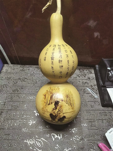 □记者 陈培芳 “绵绵瓜瓞,民之初生。”这句来自于《诗经·大雅》的诗,可以说是中华民族葫芦文化的渊源。瓜瓞,就是葫芦,它是最早被人类驯化的植物之一。在烧陶技术出现以前,葫芦不仅是原始先民们家中不可缺少的容器,还被普遍用作乐器和礼器,超大个的葫芦甚至可以当船用,“浮乎江湖”。在中华民族的精神谱系中,葫芦谐音“福禄”,被赋予了平安吉祥、美好和谐的人文寓意。时光流转,葫芦在一些人的巧手中,成了绝佳的画纸,以葫芦为纸,以烙铁为笔,细细勾勒,烙印下一个个人物、一片片山河、一段段故事、一部部传奇。这就是葫芦烙画。 起源:始于汉代的葫芦烙画 前几天的结婚一周年纪念日,李女士收到了丈夫送给她的一份特别的礼物,一个烙有两个人结婚照的小葫芦,这份新奇的礼物让李女士爱不释手,发朋友圈“秀”了一把恩爱,“葫芦的谐音是福禄,把我们的婚纱照烙在葫芦上,象征着我们的婚姻长长久久,充满福气,虽然这份礼物价值不高,但是寓意很好,也颇具心思,所以我非常喜欢。”对于丈夫的结婚纪念日礼物,李女士颇为满意。 烙画葫芦艺术又称烫画,火笔画,不仅是一种汉族传统工艺美术品,而且是国家级非物质文化遗产。烙画葫芦手艺人用烙铁在葫芦上熨出烙痕作画,与葫芦融为一体能永久保存、收藏,艺术价值极高。 葫芦烙画不是现代才有的新兴事物,其实具有悠久的历史和独特的艺术风格。相传起源于西汉末年,后失传,清朝又兴起,距今已有两千多年的历史。葫芦造型优美,无须人工雕琢就给人以喜气祥和的美感。据相关资料记载,清朝时兰州的“刻制葫芦”和“范制葫芦”曾达到很高的艺术水平,成为朝廷贡品。当时采取的“火烩工艺”将葫芦的木质材料,与中国葫芦烙画作品传统的烫画技法相结合,以烙铁代笔,运用国画的白描、工笔、写意等手法,在葫芦光滑坚硬的表皮上,创作出人物、山水、花鸟、走兽等作品,随着艺人对艺术的理解和对烙铁的娴熟运用,画面呈现出焦、黑、褐、黄、白等多种层次和国画渲染的效果,表现力非常丰富。 葫芦本色就有古画的基调,在上面临摹出名家的国画作品,线条流畅准确、形态栩栩如生、意象幽深高远。给人以耳目一新、不媚不俗的感觉。烙画艺术使葫芦由农家瓜果登上了艺术殿堂,成为一种集拙朴自然和高雅精美为一体的民间艺术品。 结缘:“新奉化人”的葫芦奇缘 2013年的一天下午,来自山东临沂的张同林闲来无事,去公园路的花鸟市场闲逛,无意间发现一位老爷爷在摆摊卖晾干了的小葫芦,大大小小的葫芦一下子吸引了张同林,从小喜欢国画的他当时就突发奇想:葫芦如此可爱精巧,底色又与国画用纸相近,可不可以在葫芦上作画呢?于是他买了几个葫芦急匆匆地赶回家,备好笔墨,开始在葫芦上作画,“墨水是湿的,葫芦木质表面的吸水性又不好,一画就模糊,所以一开始,我这葫芦上作画的想法就失败了。”不甘就此放弃的他又尝试着在葫芦上刻画,可是没有雕刻基础,张同林怎么也做不出令自己满意的作品。他开始在网上搜索关于葫芦的艺术创作,不经意间就发现了葫芦烙画这门手艺,就这样,他开始自学葫芦烙画,并一发不可收拾。 自选材到构思,从创作到后期处理,看似简单的烙画,其实是一项工序繁琐的技艺。没有老师指导,张同林一边看视频学习,一边自己摸索,数不清做坏了多少个葫芦胚子,终于,他制作的葫芦烙画慢慢地被人们所熟知,也开始有人向他定制作品。 技巧:为每个葫芦赋予灵魂 制作一个葫芦工艺品需要很多步骤,铅笔打稿、勾线、染色笔渲染……一个四五厘米高的葫芦需要花上一两个小时,四五十厘米高的葫芦则要花费两三天时间。 葫芦是自然生长的,一个葫芦一个样子,还有很多异种葫芦,这为张同林的创作提供了极大的发挥空间。“要想制作出一幅满意的作品,首先得选好葫芦,然后,经过刮皮、去水、晾晒、抛光等流程,将其变成滑溜光洁的‘纸张’。再根据每个葫芦的形状、大小,决定绘制的主题和图案。要想表现颜色的深浅变化,下笔就要轻重有别,颜色深的地方电烙笔要用高温,颜色浅的地方要用低温,时间还要掌握得恰到好处,这样,不用颜料即可呈现出画的深浅层次、韵味意境。”张同林说。 设计固然难,烙画的过程也绝不轻松,葫芦是圆的,容易滚动,张同林必须一手扶着葫芦,一手运笔,葫芦是曲面的,电烙笔明明走的是直线,由于视觉错觉,看上去却是弯曲的。所以每画一会儿,张同林都要观察效果是否满意,不停调整。他说:“我从小就喜欢画画,跟着老师学过国画,线描功夫不错。其实电烙笔和我们平时用的笔一样,只是个绘画的工具。能否画好,关键还是要看美术功底,这样,每个葫芦才会有属于它的独有的灵魂。” “其实我比较喜欢自由创作,如烙那些定制的图样要简单。山水动物,线条稍微偏差一点并不影响全局,可是人物肖像,一不留神,烙出来就不像了,所以需要更加小心。”如今,张同林开始小有名气,找他定制烙画的人不少,很多是人物画,这也对他的手艺提出了更高的要求,“我觉得目前我的技术还不到家,希望未来能创造出更多新颖、精细的作品,让更多的人了解并喜欢上这门手艺。” 图为葫芦烙画作品。