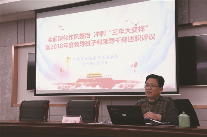 2月25日晚上,区卫生健康局召开2018年度局机关领导班子和领导干部述职评议会,并集中传达学习宁波市卫生健康委、区委区政府的重要会议精神,局领导班子、各下属医疗卫生单位党政负责人和全体机关干部参会。 通讯员 汪辰卉