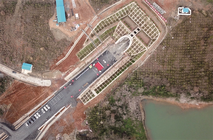 贯通后的太湖山隧道口。3月20日,由中铁建大桥局承建的商(丘)合(肥)杭(州)铁路太湖山隧道在安徽省含山县境内顺利贯通,标志着商合杭铁路隧道实现全线贯通。新华社发
