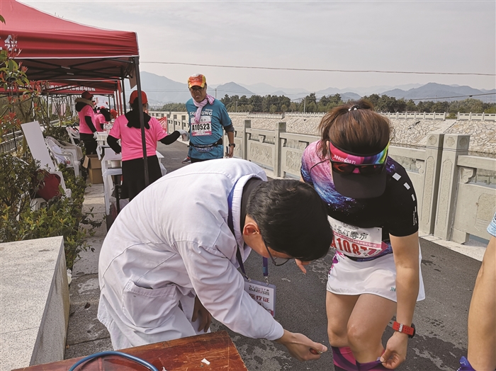 在上周日刚刚结束的2019中国奉化海峡两岸桃花马拉松赛中,一个个白色的身影始终守候在赛道旁,一辆辆救援车随时待命准备出发……早在赛前,区卫生健康局就精密部署,成立马拉松赛事医疗保障指挥部,由局长童云龙任总指挥,做好赛事四大医疗保障工作。 第一重守护:22个定点医疗服务点科学分布 本次赛事,在主会场及沿线设立了22个医疗点,并配备常用药及急救药械,如碘酒、绷带、药棉、创口贴、冰袋、云南白药喷剂等。区卫生健康局从各医疗单位抽调115名医护人员参与定点医疗保障,每个医疗点根据赛事实际需要,配备2-11名医生、护士,为途经的运动员提供基本医疗服务。 第二重守护:9辆急救车沿途随时待命 赛道沿途设置了9个急救点,各安排一辆急救车在此待命,每辆车配备1名医生、1名护士、1名急救员及1名司机,车上配备急救箱、AED除颤仪、碘酒、绷带、药棉、创口贴、冰袋、喷剂等。区急救站向鄞州、宁海、余姚、北仑、象山急救站借用6辆救护车和24名医护人员,总共10辆救护车(其中1辆作为赛事的医疗物质保障用车)、39名急救人员用于赛事医疗急救保障。此外,区急救站还在站内增加一班院前急救值班,随时待命。 第三重守护:是医生也是跑者 医护跑团随行守护 桃花马全程42公里,跑者可能在中途的任何一个地点出现身体不适的情况。赛前,区卫生健康局选拔了34名专业医护人员组成医护跑团。他们在比赛中身着标志性服装,配备急救包,随时为跑者提供医疗支持。 第四重守护:定点医院开通绿色通道 此次赛事指定区人民医院和溪口医院,作为医疗保障第一定点医院和第二定点医院,开通指定专用急救室和绿色通道,预备充足的床位、药品,并根据情况及时增加医护数量。第一定点医院救治专家小组的43位医生和第二定点医院的10位医生随时待命。各医疗单位在活动期间,加强急诊室医务人员力量配备,医院业务骨干保持通信畅通,以应对可能发生的突发事件。 赛前,医疗保障小组及急救车驾驶员多次实地踩点,充分做好物资准备。区卫生健康系统与区户外运动协会、区红十字会的山地救援、骑行急救等人员通力合作,圆满完成医疗保障任务。