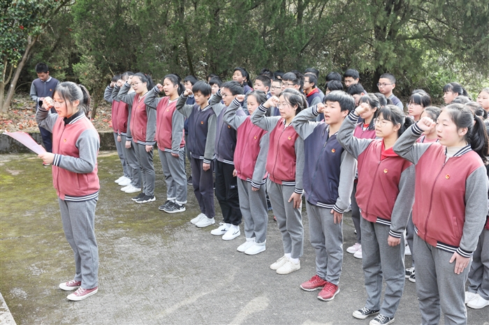 日前,大堰学校举行新团员入团仪式,11名学生在王鲲烈士墓前庄严宣誓。