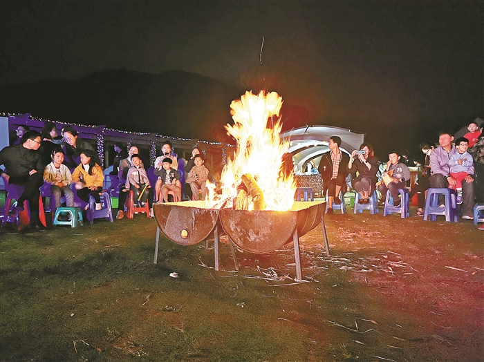 “五一”小长假,大堰镇安排了各种文旅活动,迎来众多游客。5月2日晚,常照村篝火音乐趴吸引了大批游客和当地村民露营烧烤,让大家乐在其中。