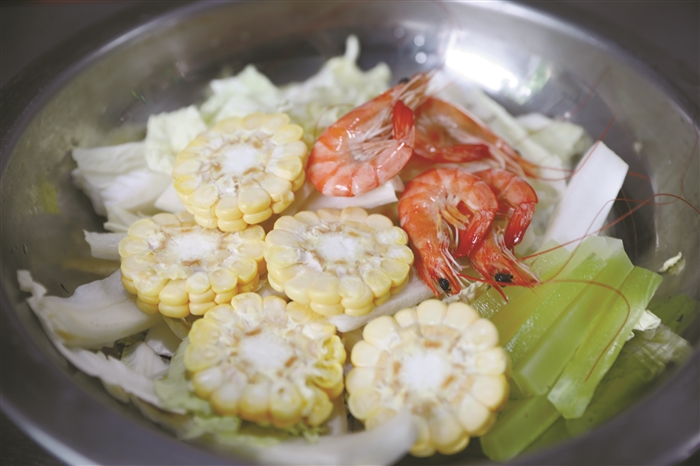 做好一切准备工作,张欢穿上白色的厨师服,带上厨师帽,开始动手。他将3只新鲜牛蛙去皮洗净,斩大块,放入碗中,开始用盐、生粉腌制两分钟,随后等油温八成热时候,下锅炸一下,倒出油,接着起锅,下少许油,放少许姜片、蒜子、豆瓣酱,下水,下配菜——玉米、莴笋、娃娃菜,下鸡粉、盐、味精、糖,煮熟后捞出装盘垫底,原汤下入牛蛙、虾,放半瓶啤酒,加少许猪油、青红泡椒,水开小火焖3分钟,下青红线椒配色,大火收汁,起锅装盘,撒上葱花、白芝麻。一道高颜值、超美味的稻香牛蛙就做好啦。牛蛙肉滋滋的冒着热气,香味随机飘来,诱人程度满分。夹上一块,嫩嫩的稻香牛蛙在舌尖,鲜香可口、肉嫩多汁,食后齿颊留香,加上丰富的配菜,真的让人食欲大增。