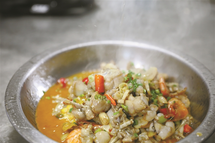 来自江西省九江市的张欢从16岁开始做学徒,至今已有23年厨师经验了。前几年,他来奉化开餐饮店,经过数次试验,终于研制出了一道色香味俱全的稻香牛蛙,且十分符合奉化人的口味。