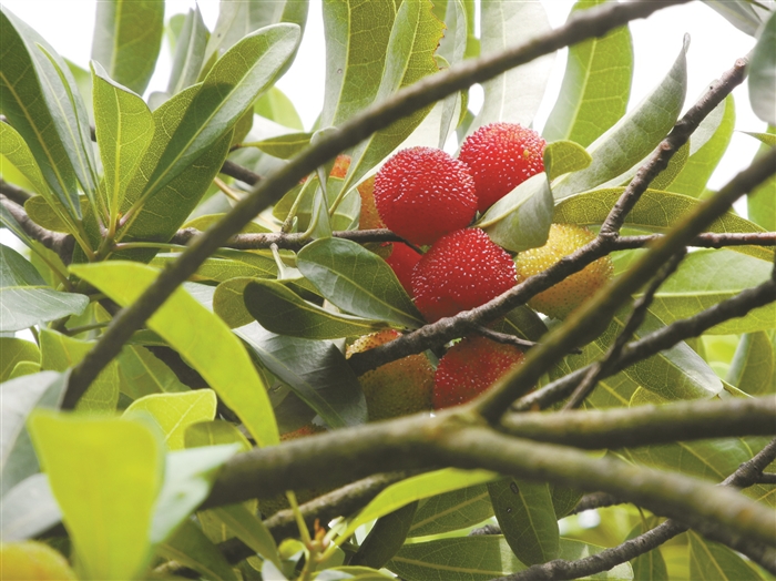 本报讯(记者 徐华良 通讯员 吴侃侃)绿水青山杨梅红,又到一年尝梅时。昨天,记者在奉中市场发现,已有本地杨梅少量应市,个头不大,每公斤价格为40元。 记者在区农业农村局采访时了解到,目前全区有杨梅种植面积15860亩,预计今年总产5000吨左右,比去年减产1000吨以上。我区杨梅品种以荸荠杨梅为主,主要分布在锦屏、萧王庙、西坞、溪口、莼湖和尚田等地,还有被评为宁波“十大名果”的莼湖楼隘乌梅和东魁杨梅。楼隘乌梅一般上市较迟,要到6月下旬才能与消费者见面。西坞东魁杨梅上市时间在6月中下旬。据高级农艺师吕道坤介绍,今年杨梅总体挂果要比去年少,但目前挂果的杨梅个头比去年大,品质也比去年佳。西坞东魁杨梅产量相对比较稳定,而今年台州地区东魁杨梅普遍减产,这对西坞梅农来说无疑是个好消息。今年杨梅为何减产?吕道坤解释道:“因在开花坐果时受低温寡照天气影响,今年露天杨梅挂果量比去年少了二成左右。虽然挂果少了,但是杨梅的营养和品质会更好。现在少量杨梅抢鲜上市,一般个头较小,甜度不足,价格偏高。预计露天杨梅在6月10日前后大面积开摘,到那时,杨梅味道会更好。” 记者昨天来到杨梅主产地的锦屏街道外应村采访时注意到,杨梅树上挂的杨梅不多,有的还处于膨大期,非常青涩。一位姓应的果农对记者说,今年外应杨梅是小年,减产幅度较大。而锦屏街道西圃村果农范士坤在果树专家吕道坤的精心指导下,采用矮化技术,对杨梅进行重修剪,年年挂果累累,没有大小年之分。 随着奉化本地产杨梅“崭露头角”,外地杨梅将陆续退出奉化水果市场。如果市民要吃品质好一点的荸荠杨梅还要再等四五天。