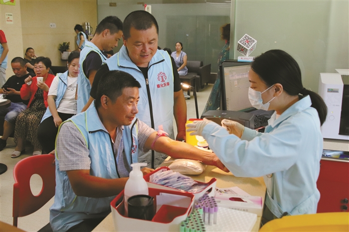 7月28日,锦屏街道关工委乐享志愿服务队志愿者来到宁波献血中心,开展集体无偿献血活动,23人报名参加,其中17人成功献血,总献血量达到4800毫升。