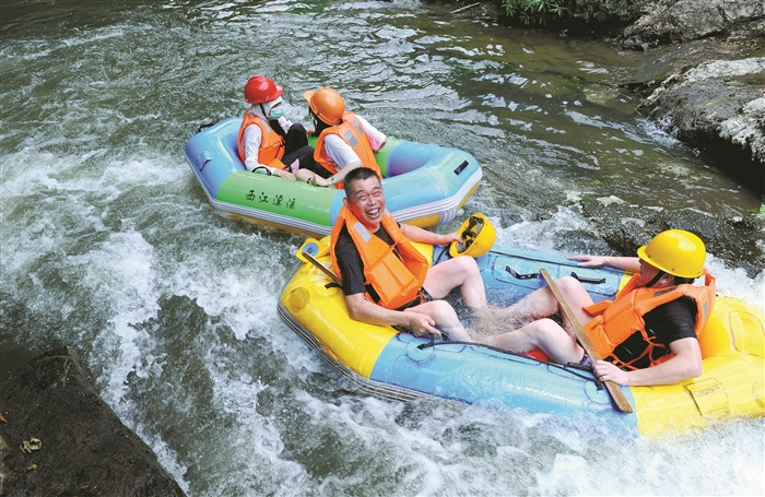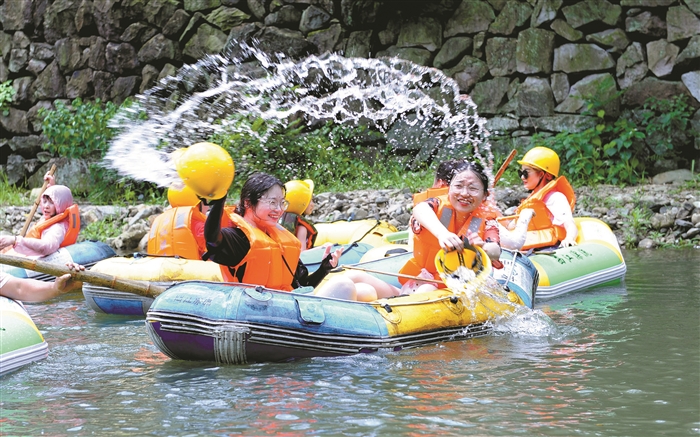 记者 李露 王红雨 有网友说夏天最理想的模式就是:“枯藤老树昏鸦,空调wifi西瓜,晚饭有鱼有虾,葛优同款沙发,夕阳西下,我就往那一趴……”虽说高温来袭,这条命都是空调给的,可不“湿个身”怎么对得起炎炎夏日?七月盛夏,不如来一场刺激好玩又清凉的漂流之旅? 3处漂流各有千秋 大自然的水景,人人都无法抗拒。但说到漂流,又多了几分惊险之意。奉化棠云西江漂流位于萧王庙街道棠岙村。漂流路程大约3公里,全程漂流时间约1个小时。 棠云西江漂流就像一个有意设计好的循序渐进的过程,水流由缓而急,险滩由稀而密,人的胆量也变得越来越大,人水相长,最终把人水相搏的境界推上极致。刺激之处,滩连着滩,急湍似箭,猛浪若奔。游人漂流其间,不得喘息之机,刚刚才被巨浪浇透,下一波浪涛又劈头盖脑袭来,此时连惊叫也来不及了,只有抓牢索套,任由皮艇迎着惊涛骇浪一路闯关夺隘而下。 急流过后,就是静水区,水深只有70-80厘米,清流潺潺,碧波悠悠,凉风习习。与刚经历的激情奔放、野性不羁相比,此时的水流完全就像换了副面孔,变得安详宁静,温柔可人。两岸竹林葱茏,水面波光潋滟,青山绿水,相映生辉,像是要把游人探险漂流时专注于漂流而忽视了的美景给补回来似的,这一河段的峡谷感更强,景致也更加秀丽多姿。 据悉,目前奉化域内共有棠云西江漂流、西坞金溪漂流、溪口岩头古村漂流3处漂流点。因所处的地域位置不同,这3处漂流也各有千秋。溪口岩头古村漂流位于溪口镇岩头村,漂流河道约6公里,时长约1.5小时。岩头古村漂流自溪口东坑电站水口起,于蒋氏发妻毛福梅故居岩头村而终。除却秀丽的自然风光,沿途还有保留完好的清代建筑群、富有特色的古老院庭可供观赏。 西坞金溪漂流,位于奉化税务场村,漂流途径西坞金溪五村,全程3.8公里,时间约为2小时。这里山环水绕,清凉怡人,漂流直下,时而湍流起伏,时而平缓如镜,时而蜂蝶相戏,时而激流险阻,令人流连忘返。 易受天气影响的漂流 除了清凉,漂流最大的诱惑之处或许就跟过山车一样,因为你无法预测接下来的旅程会是怎样的光景。或许只是一个平静的前行,或许会有一个激流的打转,甚至会突然从一个落差很高的瀑布忽然直直摔下,一瞬间失重的感觉让人既恐惧又激动,但尖叫声还未完,那段瀑布已经甩在身后,人和船都被激流带去下一段河道了。越往下漂,水势愈急,流速增大,滩也更多,冲滩激起的浪涛一遍遍把人全身浇透,每个人都只能全神专注于水了。 在西江漂流现场,来自上海的徐阿姨告诉记者,这是她第三次来棠云西江玩漂流,每次都有不一样的体验。“前两次玩的很开心,所以今年我们早早就在商量要再来玩一次,但是上阵子不是天气不好嘛,就拖到现在才来。”徐阿姨一边摘下头盔舀水,一边笑呵呵地说道。 与农民一样,漂流大多靠天吃饭,天热便是旺季,天凉则惨淡无比。大多漂流点一般于5、6月开始营业,直至10月结束。棠云西江漂流的总经理单永刚告诉记者,他们的主要顾客群体是苏州、上海、杭州等长三角地区的团队游客。“往年我们这三个停车场都不够旅游大巴车停的,但是今年你看,这么好的天气也就只有十来辆车。” 溪口岩头古村漂流的工作人员也说,今年因受梅雨季的影响,整个7月都没有像往年那么火爆,“不过,预计8月的客流量会稳步上升,到达往年同期水平,或者更高。” 漂流的几大注意事项 除却受天气影响,为保障安全,也为带给游客全新的体验,大多漂流点基本几日一小修,每年一大修。“漂流有太多的不确定因素,有时雨水一来,河道被冲毁了,我们就得休业好几天,去补修河道。”单永刚说,“所以要来漂流的游客,一定要关注我们发布信息的微信号,时刻注意开放时间,提前做好准备。” 据棠云西江漂流的工作人员介绍,漂流河段一般都是比较安全的,只要不自作主张随便下船、不互相打闹、不主动去抓水中的漂浮物和岸边的草木石头,漂流筏都不会翻。一旦“翻船”也没关系,70-80厘米的水深,再加上正确穿戴的救生衣,也不会轻易呛水。 漂流筏在通过险滩时一定要听从一旁船工的指挥,筏上的游客不要随便乱动,应紧抓安全绳,收紧双脚,身体向船体中央倾斜。石头密集之处,水道变窄,水深变浅,水流变急,很容易发生搁浅。此时不必慌乱,可用桨抵住石头,用力使筏身离开搁浅处,若此招不灵,最好等待护漂员救援,自己贸然站起来推,会比较危险。 当然,漂流并不是所有人都可以参加。严重的心脏病、精神病、高血压、高度近视等疾病患者,孕妇和残疾人、60周岁以上老人、3周岁以下儿童不宜参与。去漂流时,少带一点值钱但又怕水的东西,比如相机、手机等。若一定要带手机的话,请事先用塑料袋包好。还有,漂流是一项“坏天气水上冷,好天气水上晒”的户外运动,所以漂流前和漂流后一定要做好防晒防寒措施。