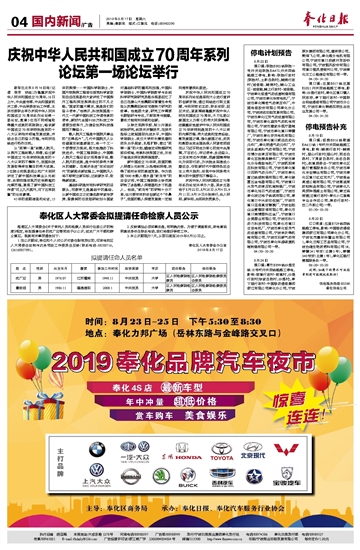 庆祝中华人民共和国成立70周年系列 论坛第一场论坛举行