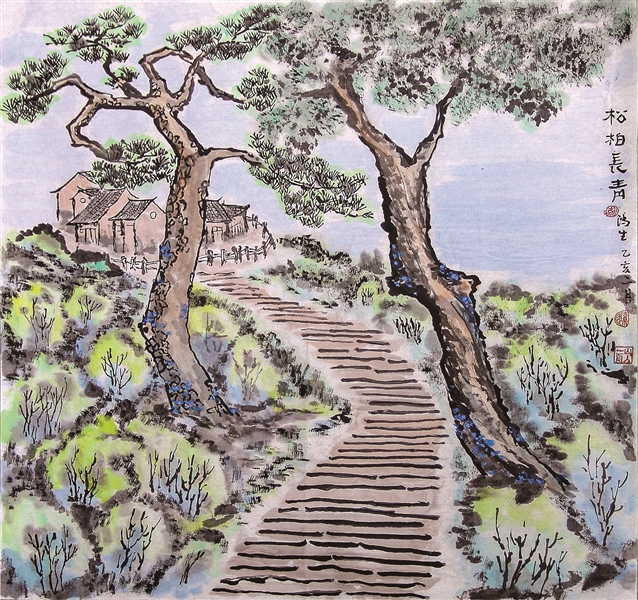 松柏长青 胡鸿生 画