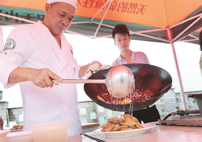 本报讯(记者 王红雨 实习生 周洁盈 通讯员 王婷)近年来,随着乡土情怀逐渐浓厚,承载着许多人乡愁记忆的乡村家宴市场日益兴起。昨天,“寻梦奉化 百村十碗”暨区首届乡村家宴美食大比拼在南山茶场火热开展。本次活动由区市场监管局、区文广旅体局、区商务局主办,区融媒体中心、区餐饮协会、区乡村家宴协会承办。 当天活动现场,奉式三鲜、海鲜米豆腐、酱烤猪头等10道奉城老底子美食为众人奉上一场味觉盛宴。参加活动的区市场监管局相关负责人表示:“乡村家宴不仅有效满足了市民的生活需求,更是对乡土文化的进一步丰富,以及农村食品安全的进一步规范,对推动乡村振兴具有积极作用。” 图为活动现场。