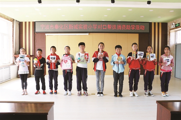 通讯员 严琳榕 据悉,上学期期末,新城实验小学为积极响应宁波团市委、少工委爱心捐赠活动,该校作为奉化区代表隆重举行了“情牵安图 爱心捐赠”仪式。大队部发动在校的少先队员们将自己家中闲置或使用过的八九成新的文具用品收集起来,装进纸箱,捐赠给对口帮扶地区的少年儿童。 一个暑期过去了,终于传来了好消息。该校的“爱心包”已成功抵达安图县新合乡中心小学。该校全体教师利用周末时间整理、归类。开学了,怀着感恩的心,安图县新合乡中心小学特别举行了“宁波市奉化区新城实验小学对口帮扶捐资助学”仪式。在现场,各年段学生代表上台领取文具,同学们手捧文具,脸上洋溢着笑容。据了解,物资中的课外读物被分成了三类,分别填充了校图书室、班级图书角以及校园内图书角等地,实现了在校每一个孩子都能拥有自己的课外书籍。 据悉,双方将通过互联网、书信等方式的交流,让孩子们相互交往,互帮互助,共受教益。相信在孩子们未来的学习生活中,始终能怀有一颗感恩之心,将爱心行动一直延续下去。