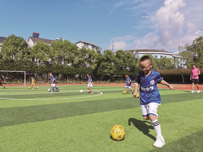 通讯员 李莉 赤日炎炎,酷暑逼人,这个夏天的武岭小学操场上却依然热情高涨,该校足球队员们不忘初心,以前期成绩为新起点,顶着酷热为未来校园足球更上一层楼而刻苦练兵。 据了解,自6月26日起,该校足球队的6名教练及40余名男女足各级梯队队员不论晴雨,每天到校坚持训练,全天累计训练时间长达3小时。虽然每日的训练时间已避开夏日的高温段,但剧烈的运动仍会令人汗流浃背。尽管如此,陈庆龙、陈戊波、王刚老师以及三位外聘教练依旧愿意放弃休息时间,全情投入训练足球队员;队员们亦战胜酷暑,在操场上苦练守门、颠球、传球、进攻、防守、配合等技战术,为提高自身的足球技能挥洒着汗水。 作为全国首批校园足球特色学校以及宁波市省级校园足球定点学校,该校从2005年起便开展校园足球运动,所取得的竞技成绩在省市内有了一定的知名度。但是成绩只能代表过去,发展必须放眼未来。“冬练三九,夏练三伏”,利用假期进行集训,是该校坚持多年的优良传统。他们深信,只有不断进取,才能使“足球文化”和学校的“新学力文化”互相依存,推动学校的科学发展。