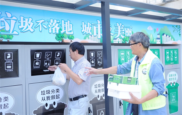 岳林街道丽江名庭小区原有8个垃圾桶4个点位,近日,街道在小区内设立了一个垃圾房,取消了原来所有的桶和点位,做到一个小区多点合一,便于引导管理。垃圾房内设有12个分类垃圾桶,社区每天早晚都派了党员志愿者在桶边督导,目前该小区的垃圾分类投放准确率大大提升。