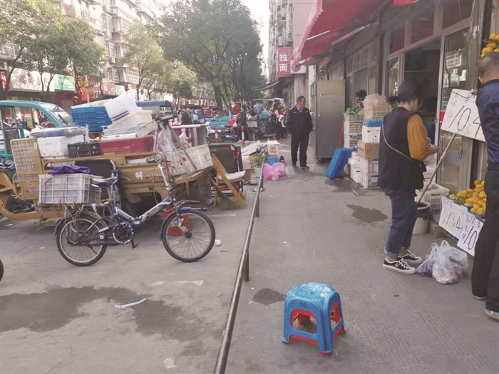 记者 毛超峥 昨天上午,记者来到后方菜市场及周边区域走访,发现车辆乱停放、占道经营、路面垃圾未清、垃圾混投等现象较多。 在东升路29幢附近,道路东侧设置了停车位,但不少车辆为了方便将车停放在道路另一侧,剩下的路面仅供单辆汽车通行。还有居民将晾衣架摆放在绿化旁,家门口则堆放着绿植、椅子等杂物,小间存在住人的迹象。东升路27幢一间牛肉店门口散落着不少肉屑,门口的地砖上沾满了油污。 桃源社区门口设置了一组四色垃圾桶,桶身较为清洁且无异味。有人员正在对桶内垃圾进行分拣,垃圾桶旁张贴了相关分类知识和公开信息。垃圾桶对面是一处公厕,内设第三卫生间,除了有供残疾人使用的便具外,还设置了母婴设施。周边楼道口均放置了灭火器,记录显示,做到了一月一检查。 后方菜市场虽有协警和保安维持秩序,但乱停车、拥堵现象尤为严重,道路两侧停满了电动自行车,甚至占据了机动车停车位,虽然菜市场门口设置了非机动车停车位,但“僧多粥少”,部分非机动车停车位还被商家利用来堆放杂物。 一位协警表示他们也很为难。菜市场南北门还不同程度存在占道经营的现象,北门一家海产品店将冷柜搬到了店外,南门一家店铺将剥下来的菜叶直接堆放在了人行道上。市场南门的背街小巷较为脏乱,地面有不少积水,在一处下水道口,记者发现了有倾倒禽类宰杀废水的迹象,而不远处的一辆运输禽类的面包车附近散落着不少禽类粪便,十分难闻。南大门旁放置着一组双色垃圾桶,但桶盖未盖,周围有不少满溢的垃圾,桶内垃圾混投现象明显。 菜市场内公共部位较为整洁,按要求张贴了公益广告,地面无明显积水,但各摊位旁垃圾散落的现象较为普遍。熟食摊经营人员基本做到了“三防三白”的相关要求,戴有白围裙、白手套、白帽子及口罩。几乎每家店铺门口都放置了灭火器,且有每月检查登记记录,而原本应该设置在菜市场进出口的消防设施不见了踪迹。菜市场工作人员告诉记者,由于菜市场南北大门要进行改装,消防设施被暂时搬离,改装完成后会重新配备好。 后方菜市场门口占道经营现象