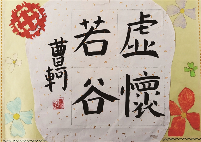 曹轲小记者的作品整体风貌有童蒙稚趣之感,可以看出其学书时间不长,点画和结字还嫌稚嫩,今后要加强字帖的临摹,丰富用笔的变化,提升结构的把握能力。