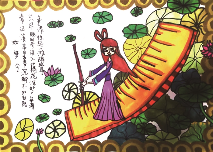从小作者的作品中可以看出,小作者是一个内心非常美好的小朋友,色彩感觉非常好,整个画面给人非常舒适的感觉,非常的和谐、生动,能明显看到古诗《如梦令》和作品画面自然融合的美感。